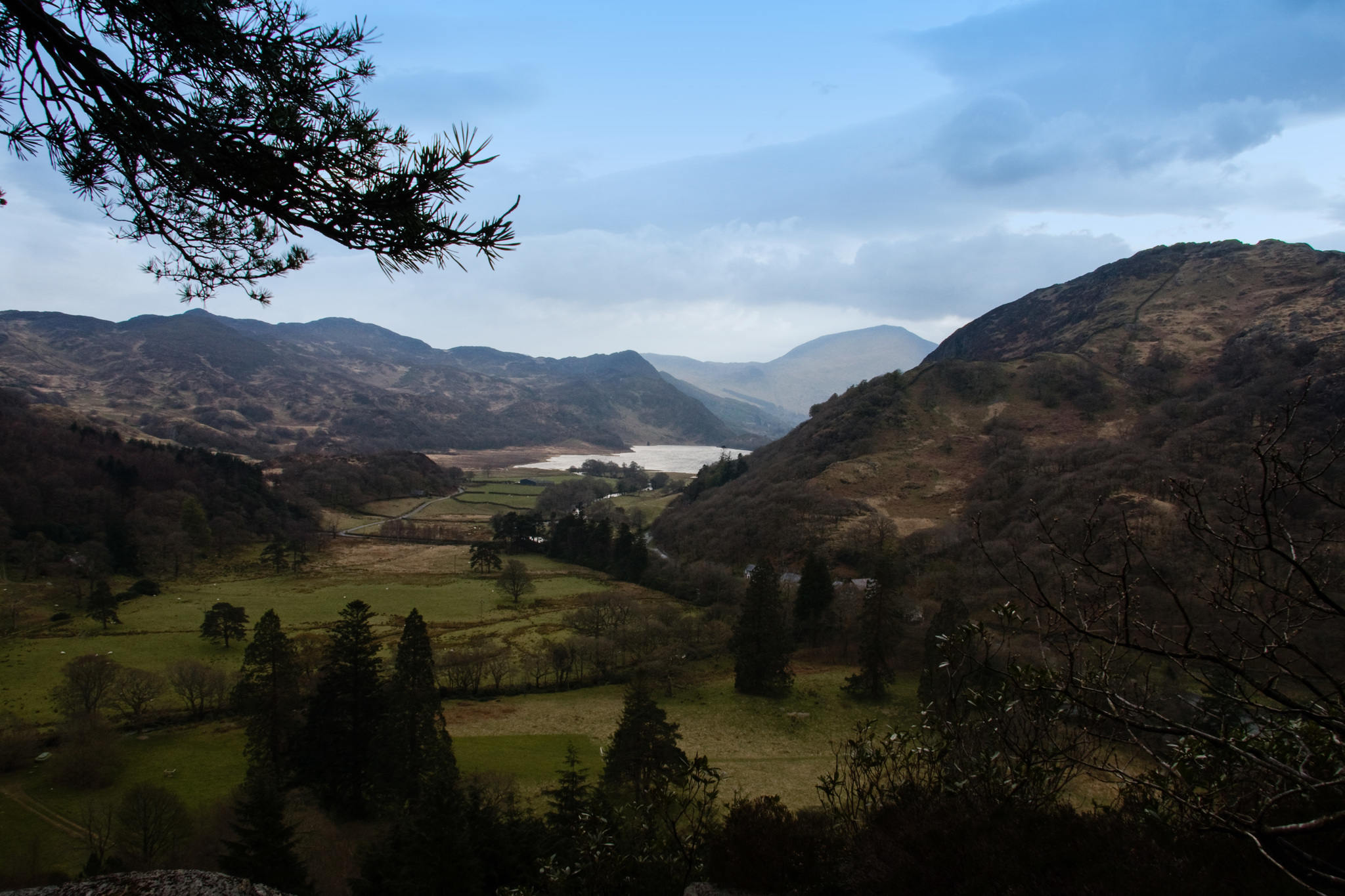 Landscape image taken from Eagle Roack in the grounds of Plas Gwynant